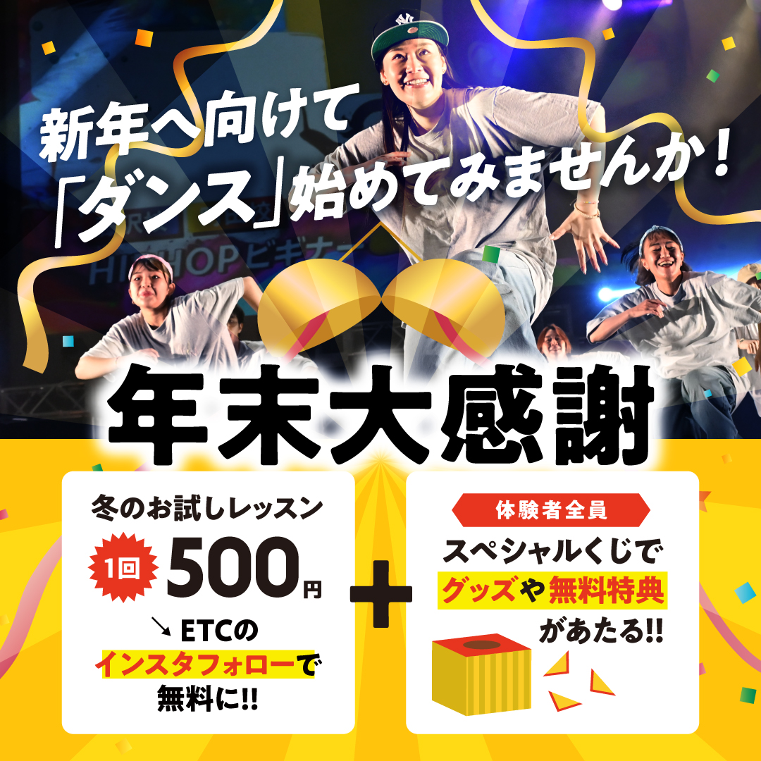 年末大感謝祭!冬のお試しレッスン500円!さらにくじ引きで嬉しいグッズや無料特典があたる!!