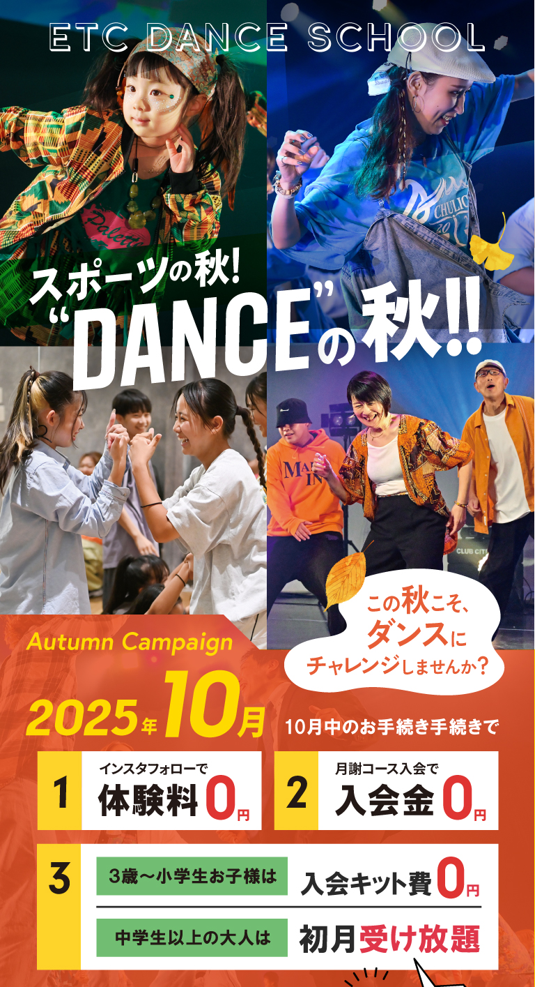この秋、お得な体験入会キャンペーン実施中!ETCでダンスはじめてみませんか?