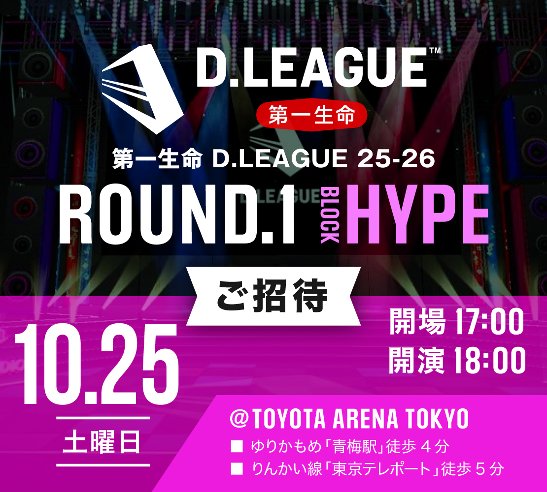 対象公演 | D.LEAGUE ROUND.1 BLOCK HYPE 2025年10月25日(土) OPEN 17:00 / START 18:00 |