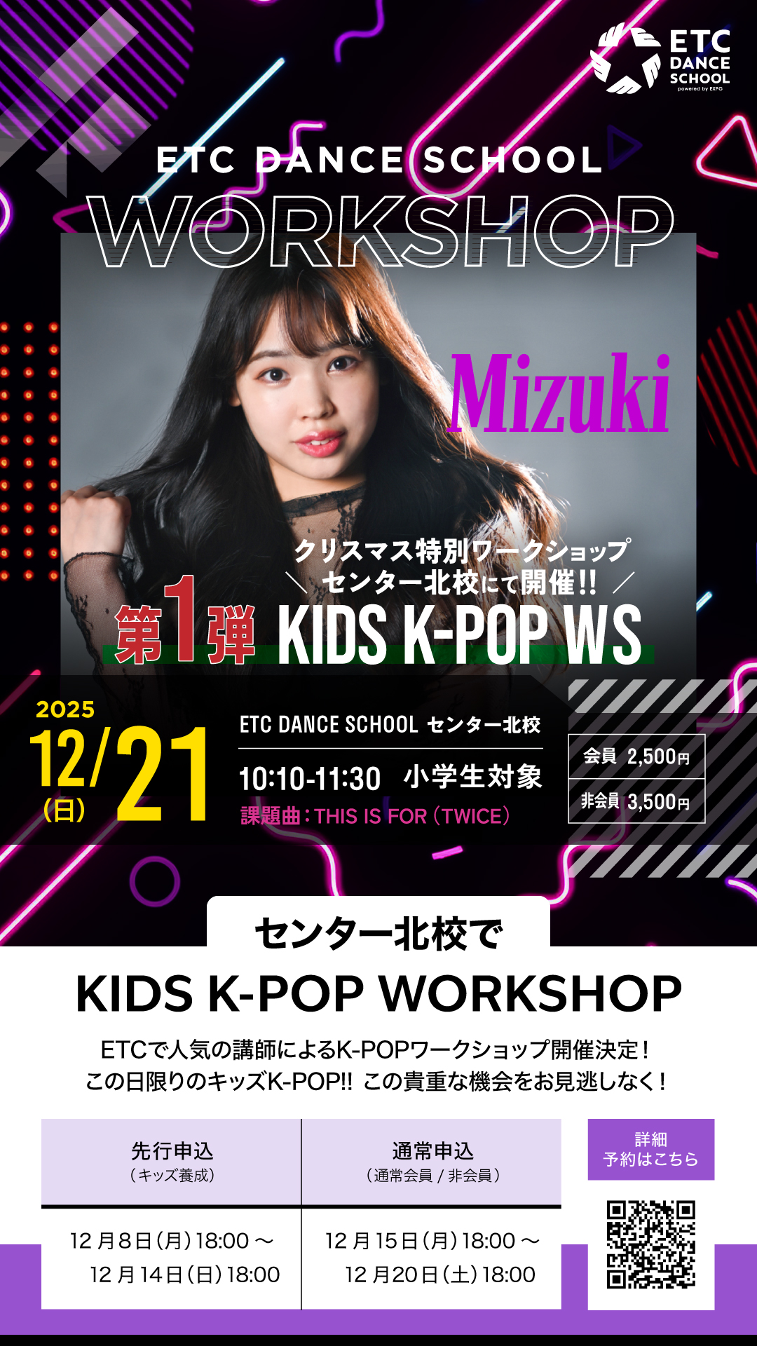 センター北校で12/21(日)「Mizuki」による小学生対象K-POPワークショップ開催!!