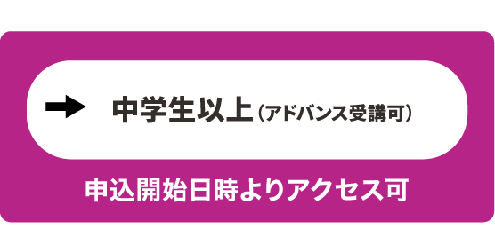| 内容 | ①16:30~17:50 小学生対象 ②18:10~19:30 中学生以上対象(アドバンス受講可) |