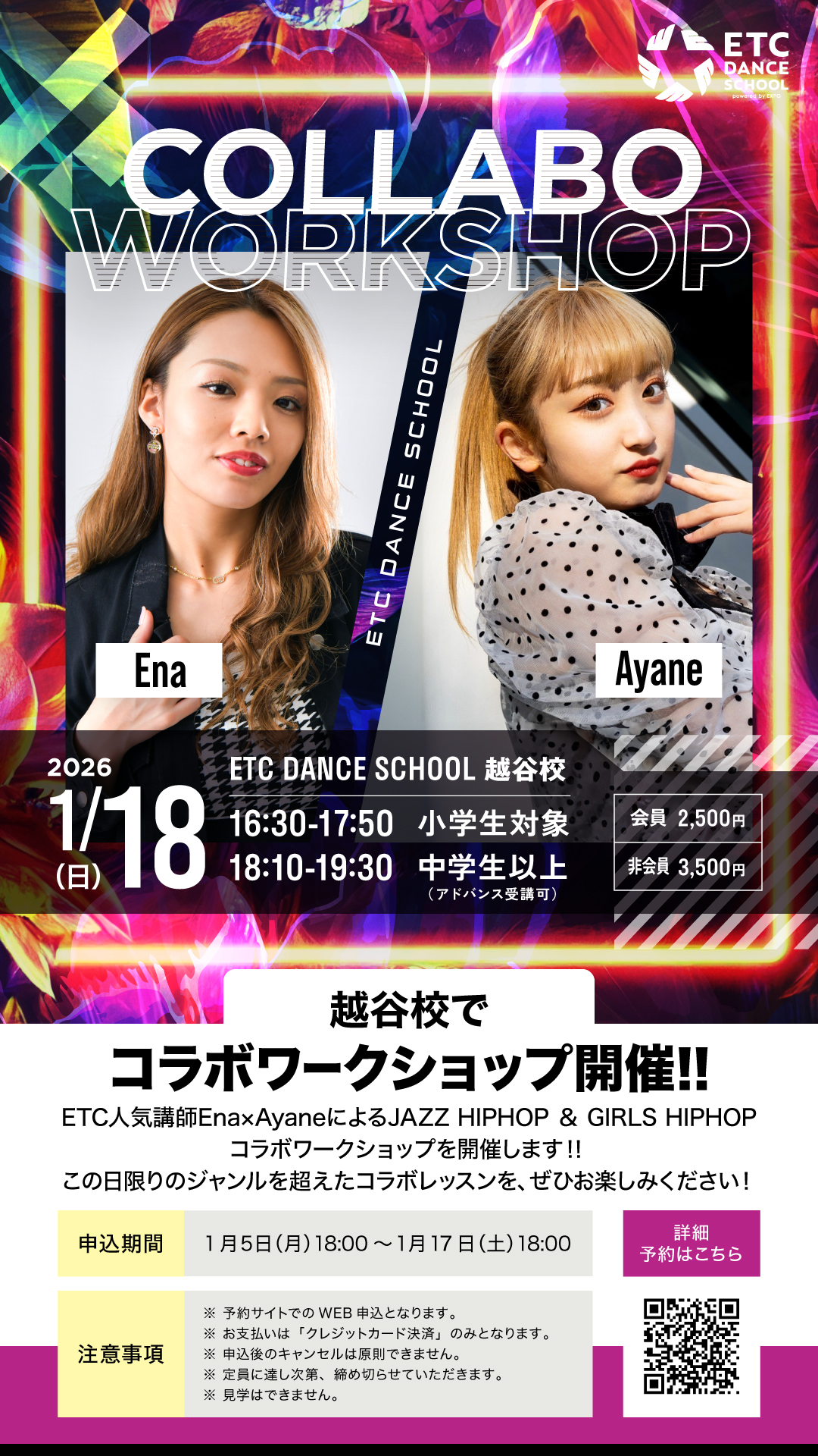 越谷校で1/18(日)「Ena×Ayane」によるJAZZ HIPHOP&GIRLS HIPHOPコラボワークショップ開催!!