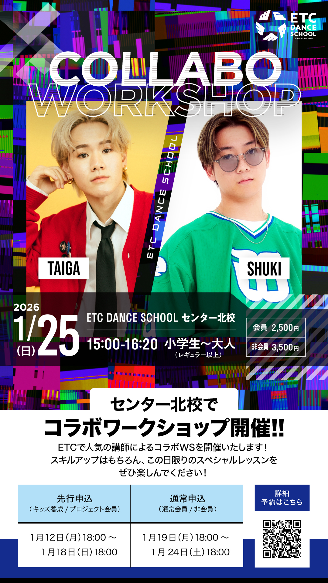 センター北校で1/25(日)「TAIGA×SHUKI」によるコラボワークショップ開催!!