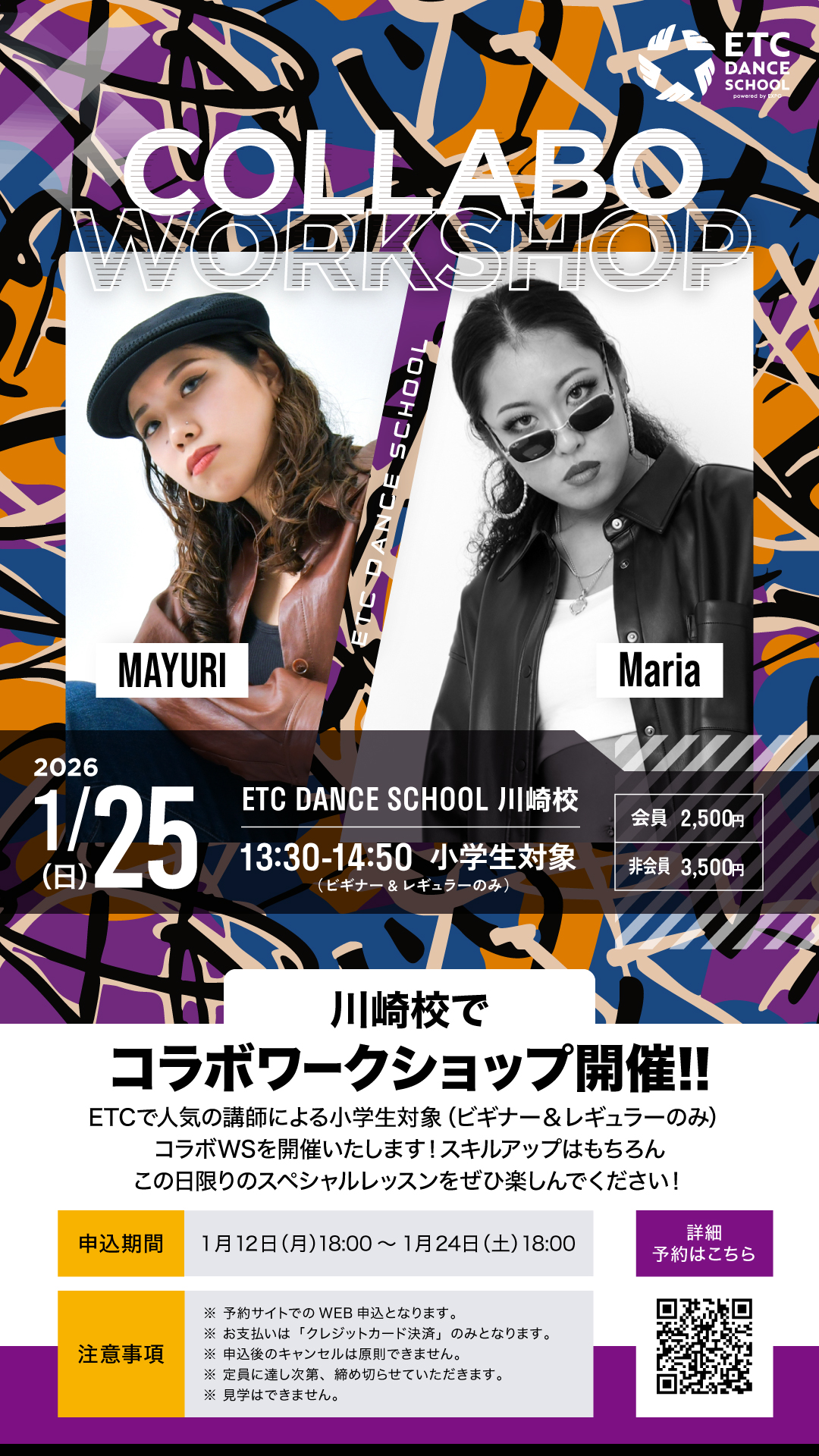 ETCで人気の講師による小学生対象(ビギナー&レギュラーのみ)コラボWSを開催いたします!