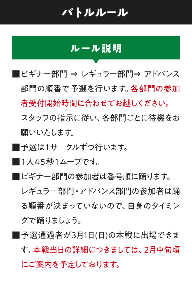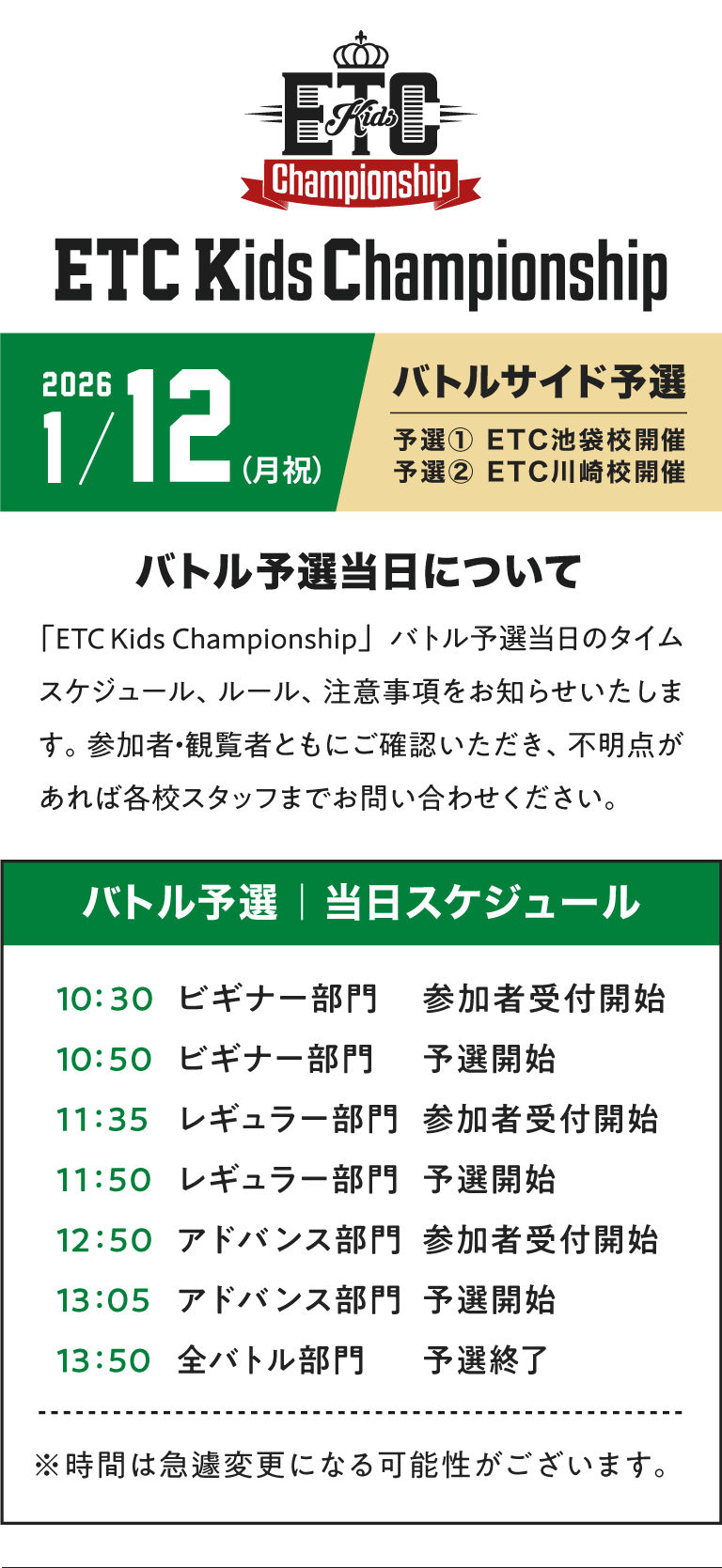 ETCキッズチャンピオンシップ バトルサイド 1/12(月祝)予選当日のお知らせ