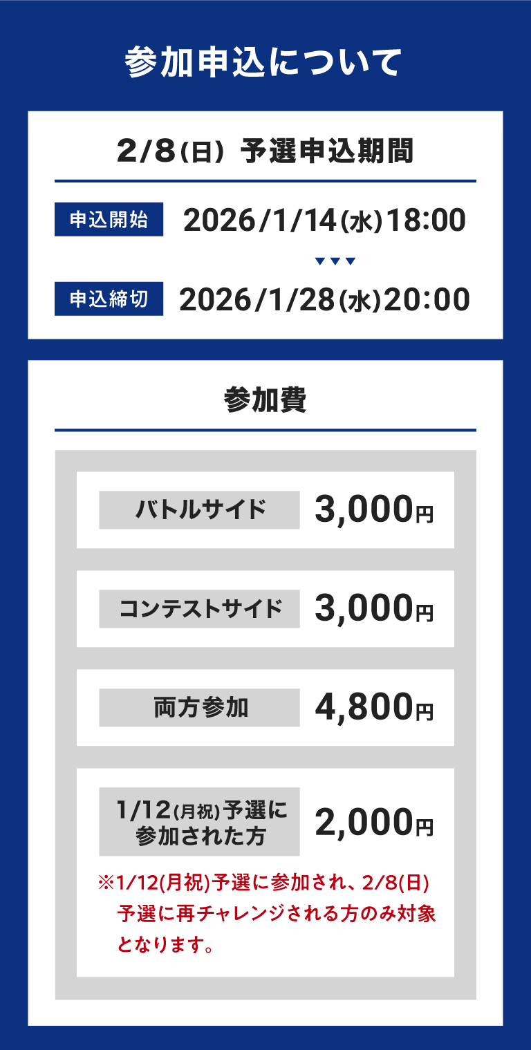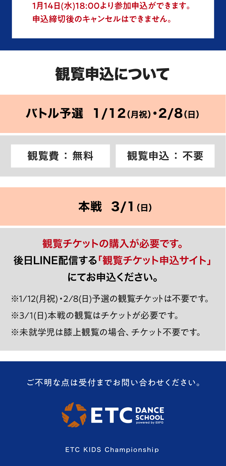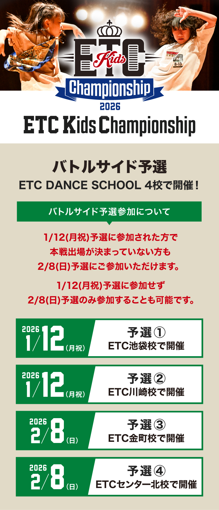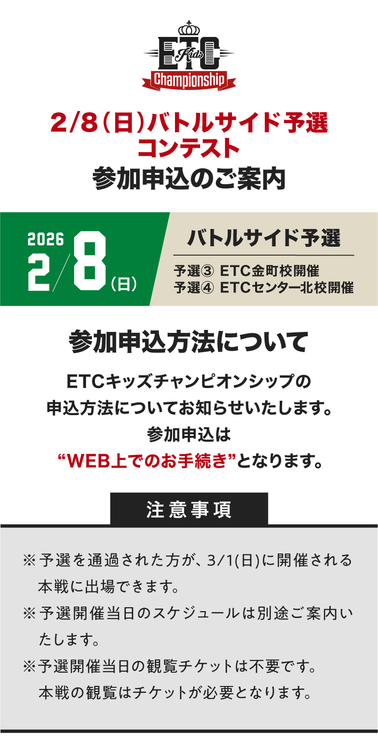 【ETCキッズチャンピオンシップ】2/8(日)バトルサイド予選・コンテスト参加申込方法について