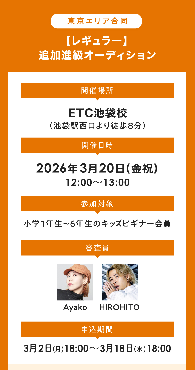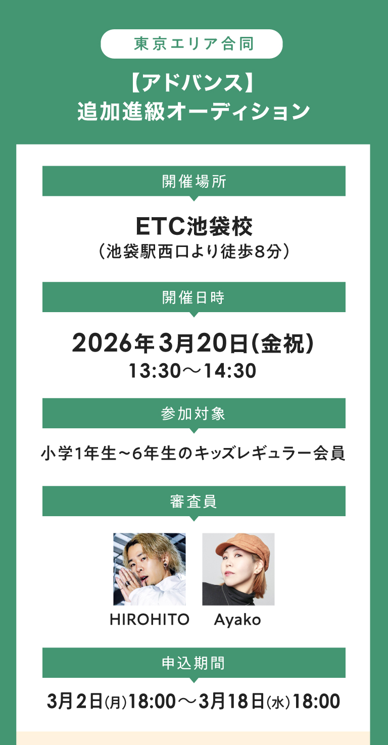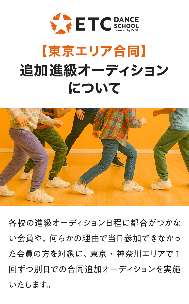 【東京エリア】キッズ“追加”進級オーディションのお知らせ