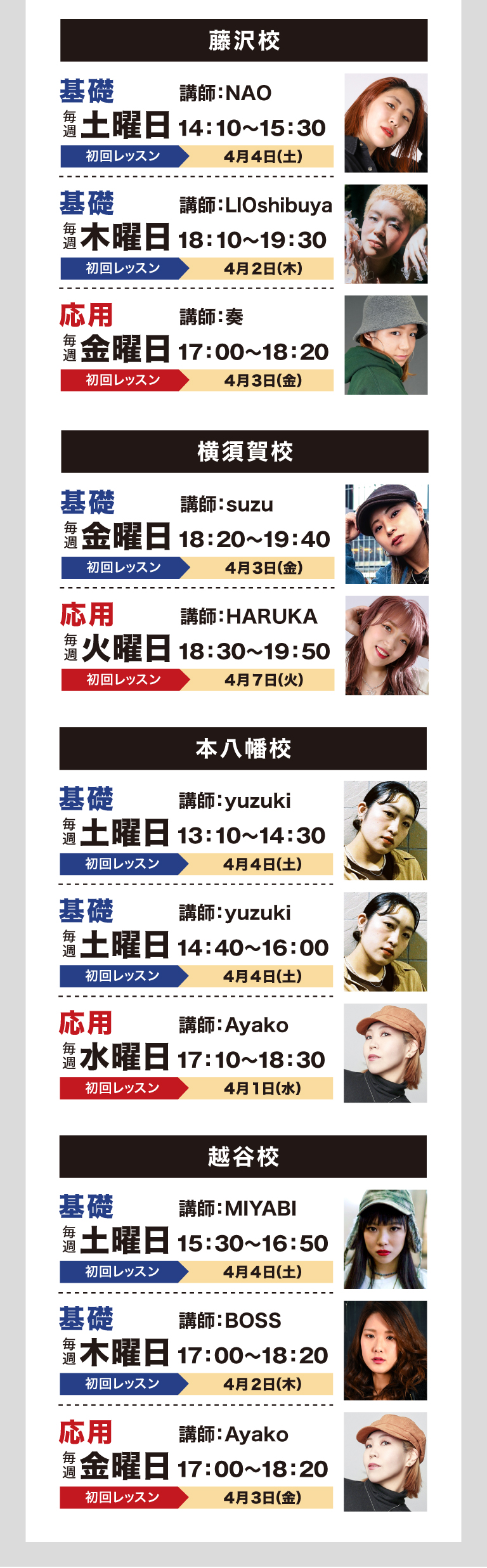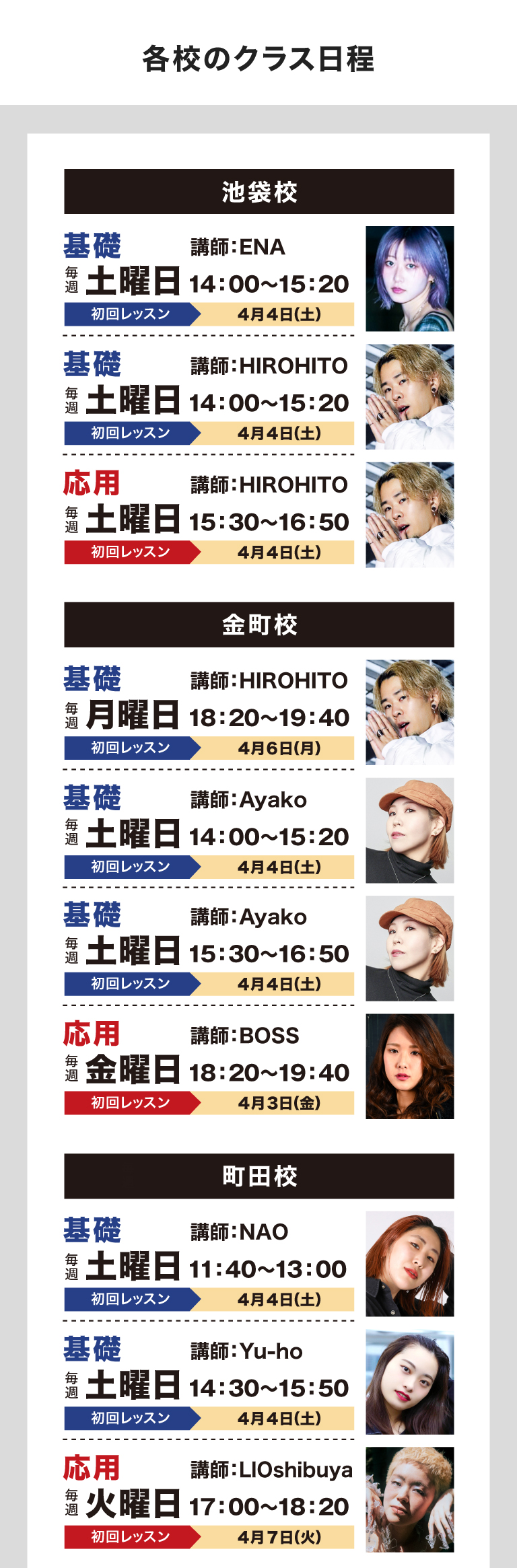 レッスンスケジュール