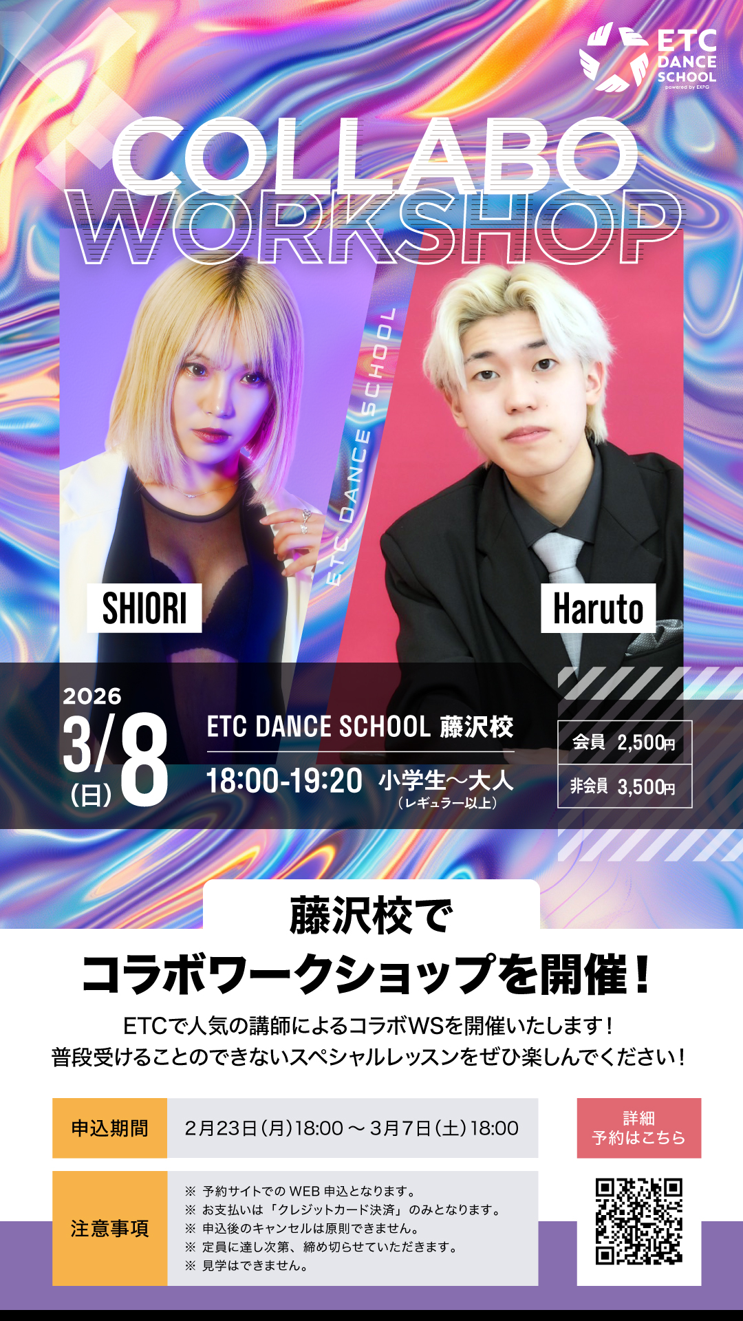 藤沢校で3/8(日)「SHIORI×Haruto」によるコラボワークショップ開催!!