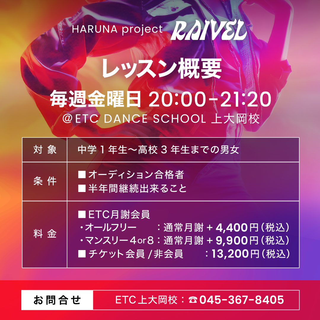 【上大岡校】4月より新規開講!HARUNAプロジェクト「RAIVEL(レイヴェル)」メンバー募集!