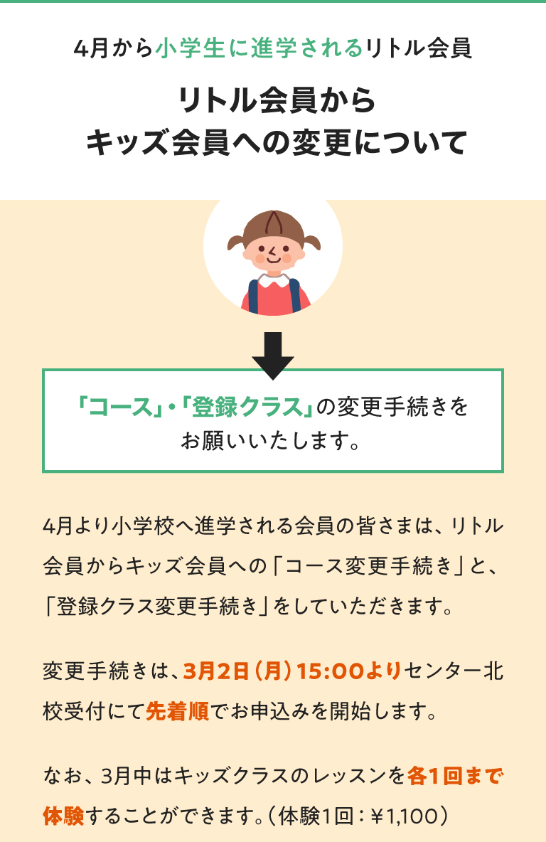 【センター北校】 LITTLE / KIDS(4月から進学されるリトル会員の皆さまへ)