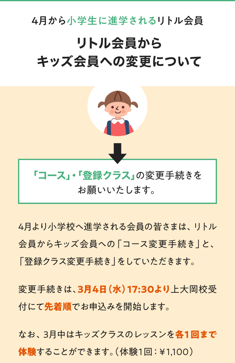 【上大岡校】 LITTLE / KIDS(4月から進学されるリトル会員の皆さまへ)