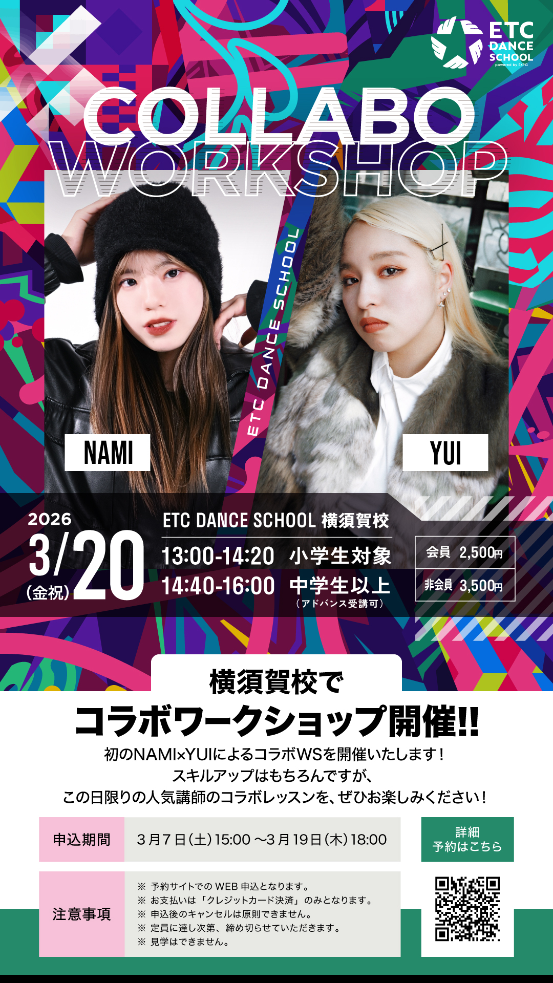 横須賀校で3/20(金祝)「NAMI×YUI」によるコラボワークショップ開催!!