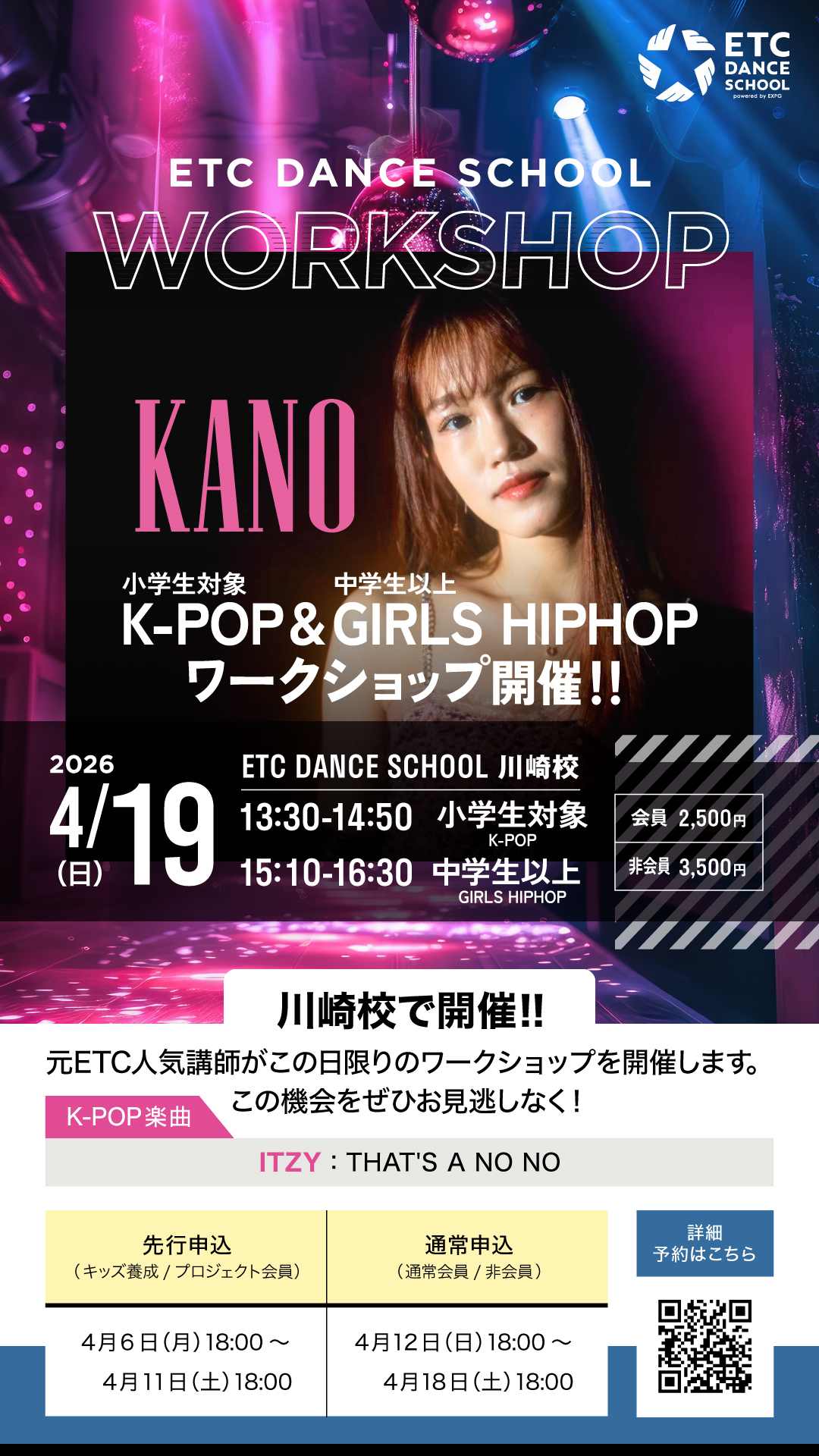 | 参加費 | ■ ETC会員(月謝会員・チケット会員) ¥2,500(税込) ■ 非会員 ¥3,500(税込) |