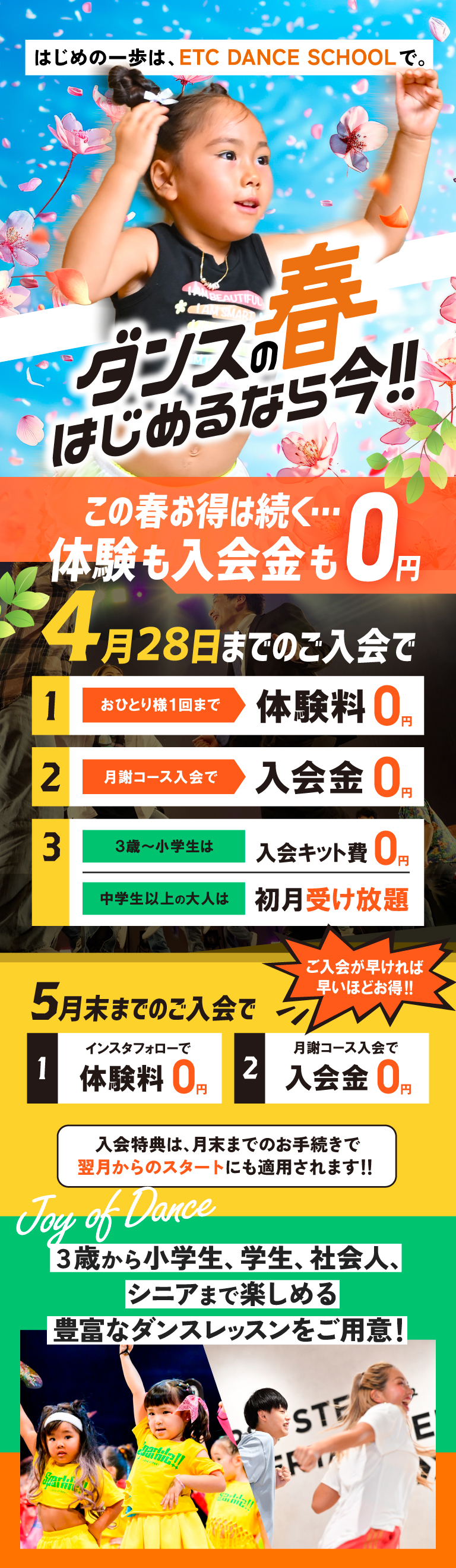 3歳から始められるダンス教室!ETCでこの春お得な体験入会キャンペーン実施中!