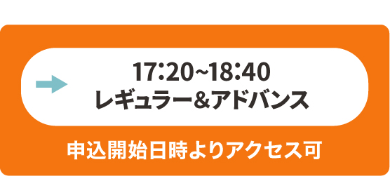 | 内容 | ①【 15:50〜17:10 】 キッズ養成/ビギナー対象 ②【 17:20〜18:40 】 キッズ養成/レギュラー&アドバンス対象 |