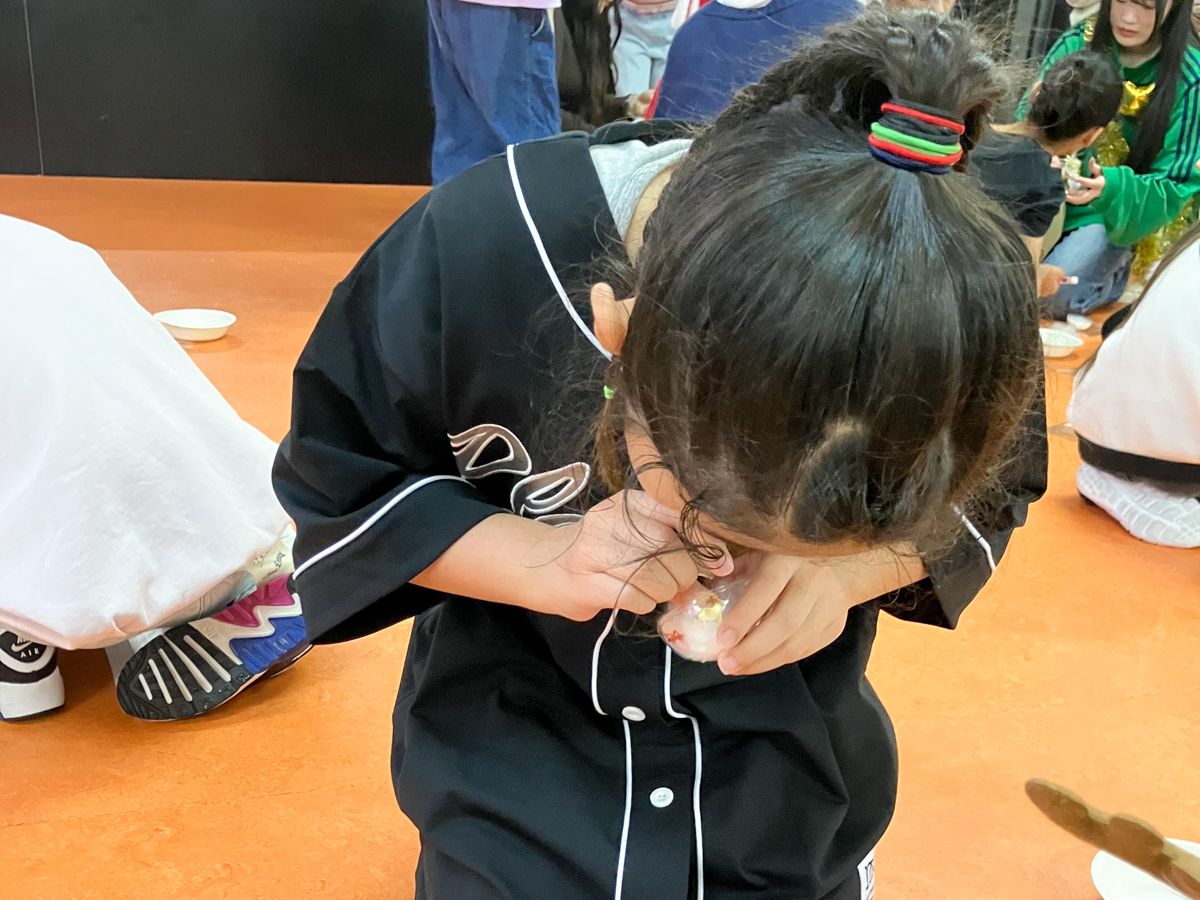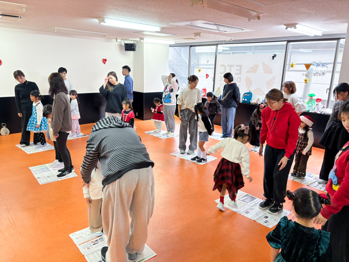 お母さん、お父さんと一緒に踊るダンスは、子供たちにとっていつも以上に嬉しそうな様子でした。その後は、親子で参加できる2種類のゲームを実施し、親子の温かい絆を感じました。