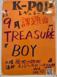 本日は9月のK-POPクラスの課題曲の発表をします。