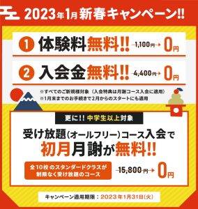 さらに!オールフリーコース入会で初月月謝無料!!!
