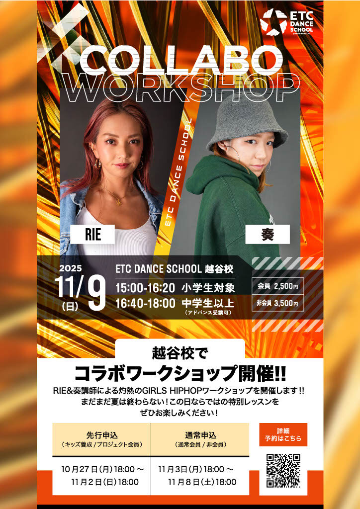 タイトルの通り「RIE×奏 GIRLS HIPHOP コラボWS」開催決定👏