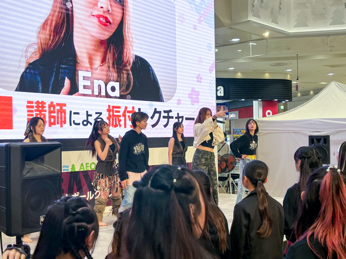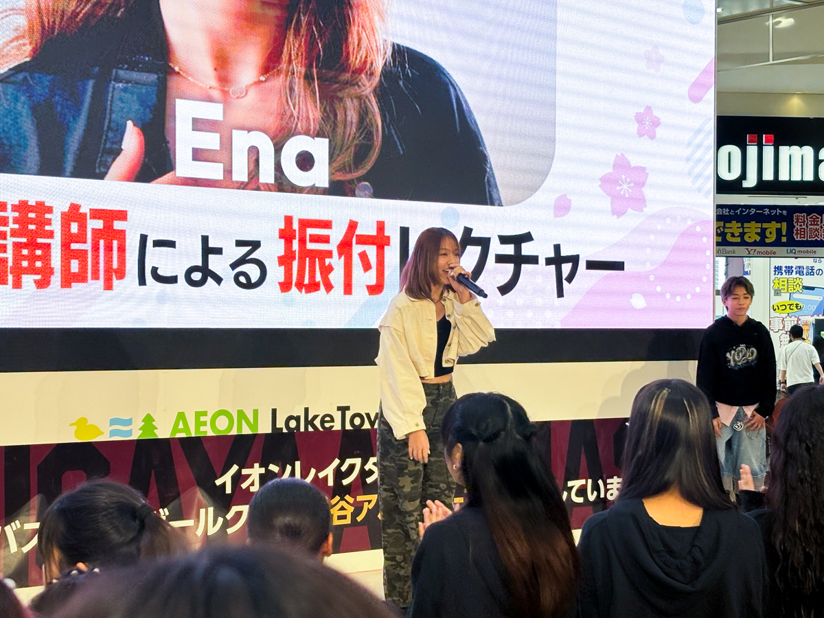 Ena講師によるSNSで話題の人気曲振付レクチャータイムでは、会場の皆さんと一緒にダンスを楽しむことができました。